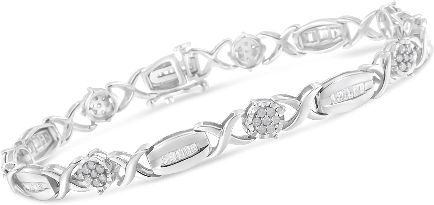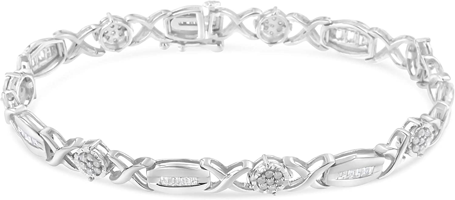 - A BRILLIANT CHOICE – Why choose imitation diamonds when you can have the real thing? Stunning sterling silver "X" link bracelet with glimmering round-cut and baguette-cut diamonds. This bracelet fastens securely with a box clasp. It is 7 inches long, best for small and medium sized wrists.
