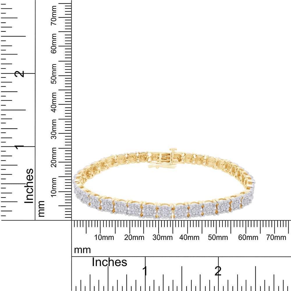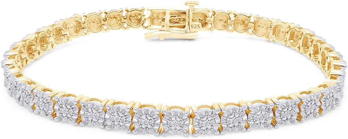 AFFY 1/4 Carat Round White Natural Diamond Tennis Bracelet, 14k Yellow Gold Sterling Silver (0.25 ct. tw.), Length - 7.25"