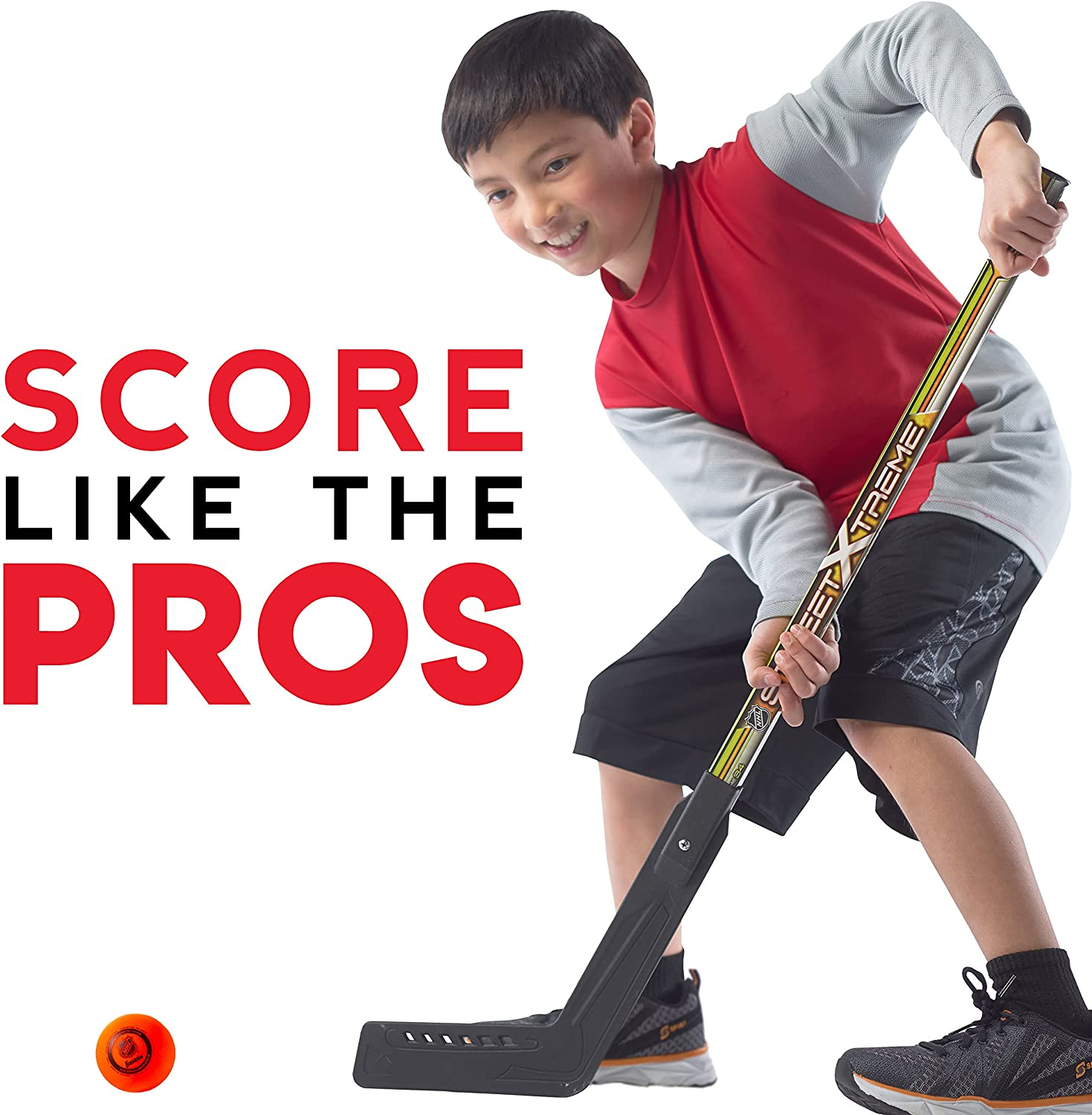 - OFFICIAL STREET HOCKEY BALL: This set comes with an official size street hockey ball specially designed for low bounces to keep the ball in play