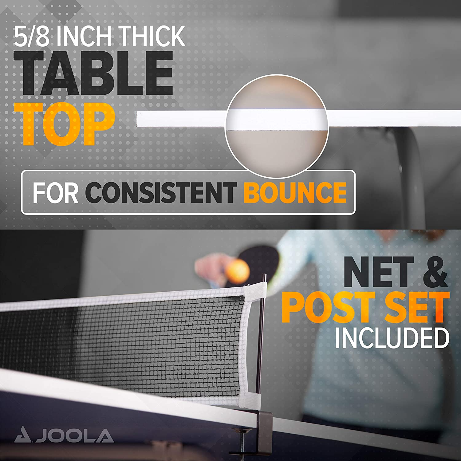 JOOLA Indoor 15mm Ping Pong Table with Quick Clamp Ping Pong Net Set - Single Player Playback Mode - Regulation Size Table Tennis Table - Compact Storage Ping Pong Table