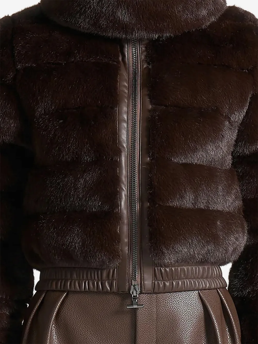 Ama plush-ribbed detachable-scarf brown jacket set (set of two)