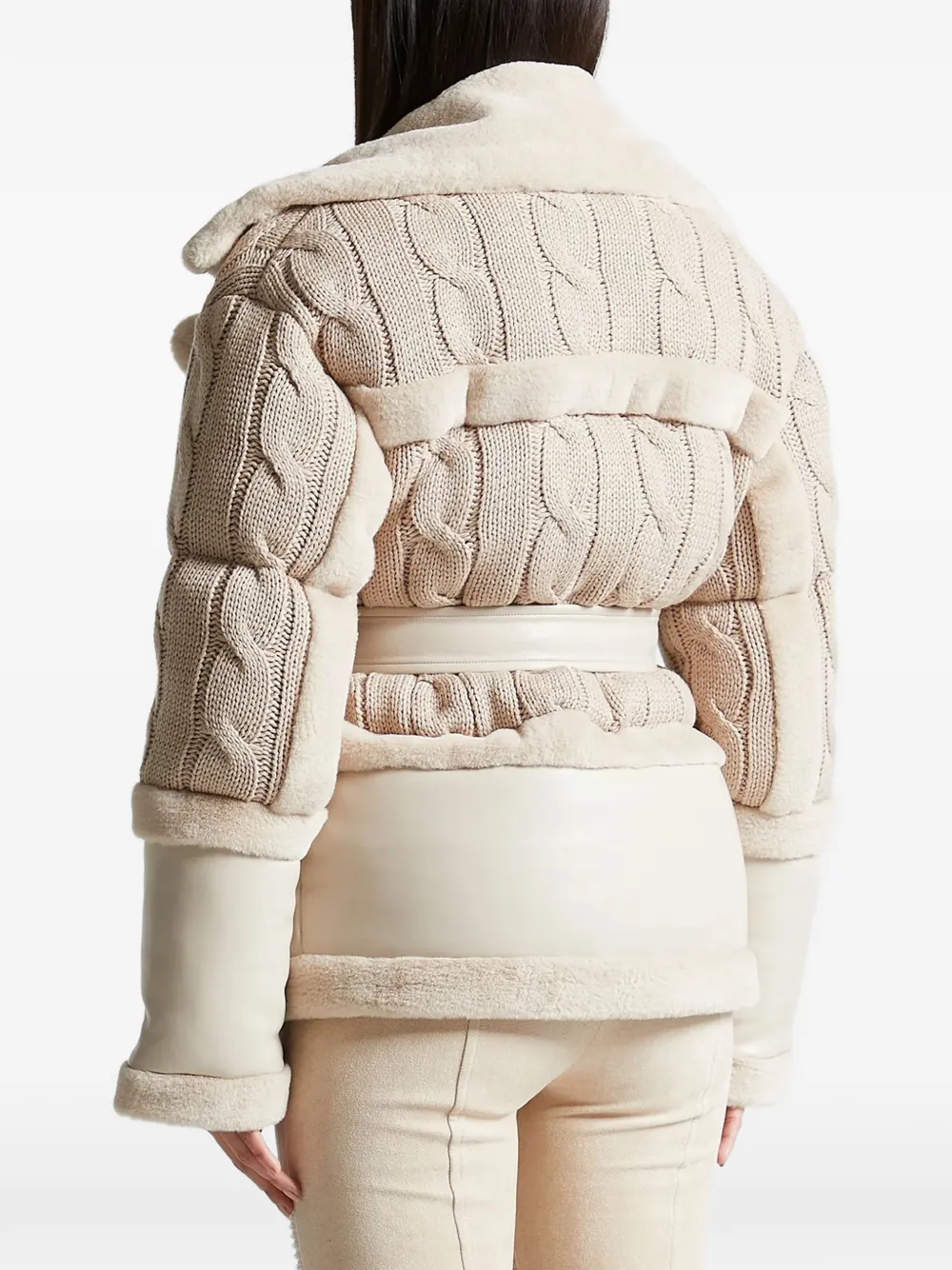Tara knit and plush beige puffer biker jacket