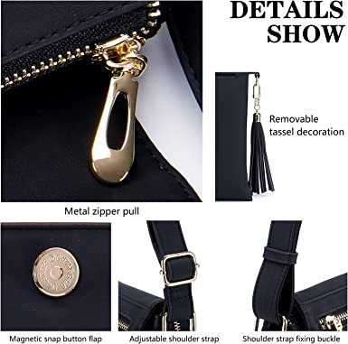 Roulens Women's Leather Crossbody Wallet Double Compartment Large Flap Lightweight Medium Crossbody Bag with Fringe