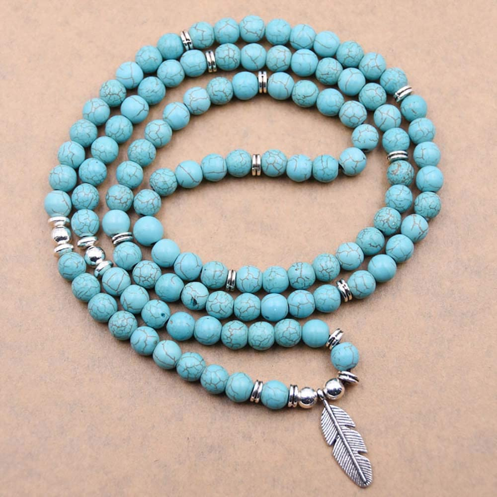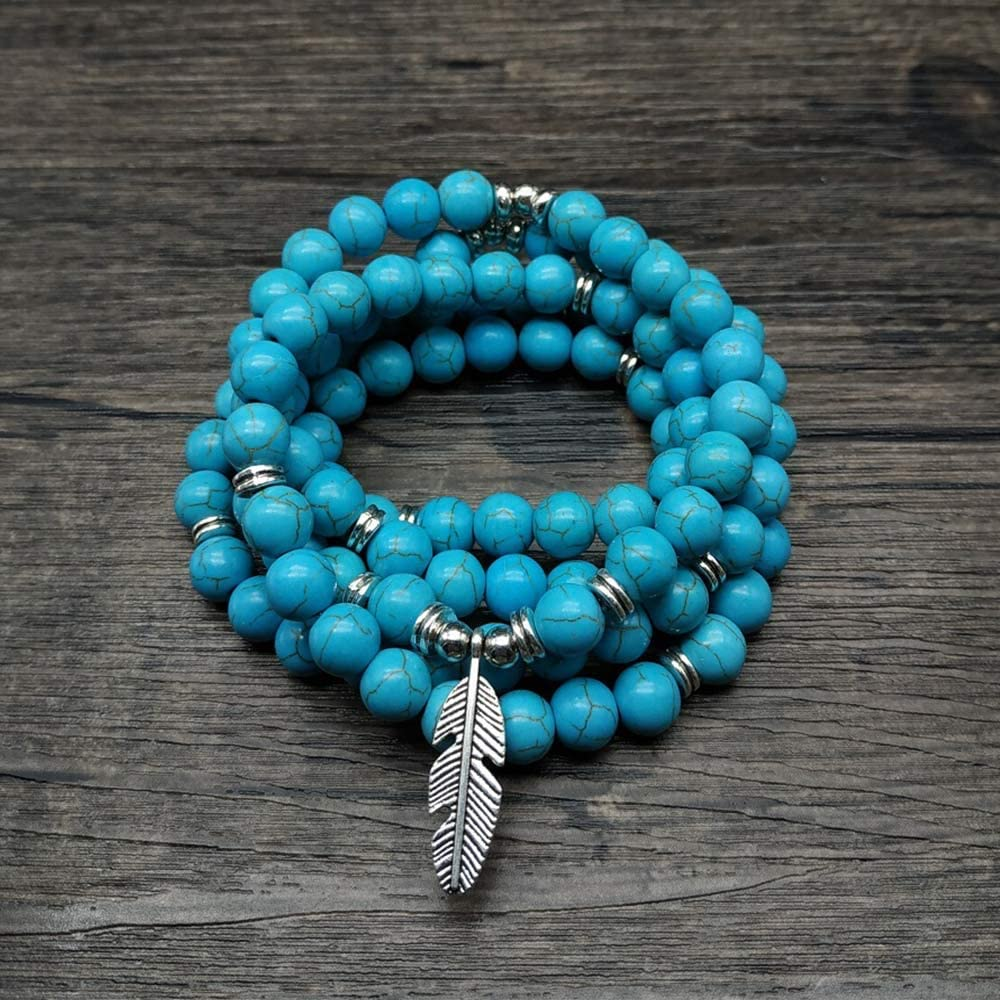 - ❁ 100% HANDMADE ITEMS: A gorgeous japa mala 108 beads wrist wrap bracelet /necklace is processed with natural healing stone beads and carefully manned with a leaf charm and accessories.